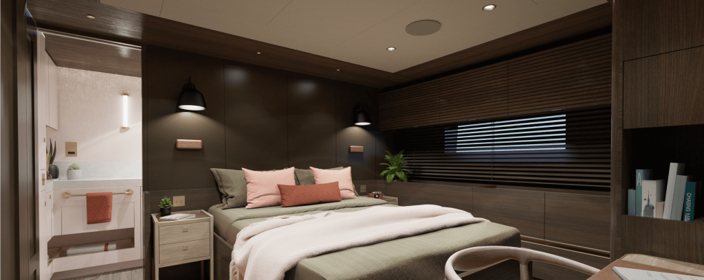 The multi-cabin DM NVX AV-over-IP audio and video distribution system provides entertainment options for guests and crew alike. The platform even supports enjoyment in remote locations with limited internet connectivity, enhancing the overall onboard experience during long journeys. DM NAX® Audio-over-IP technology covers distributed audio across eight zones with Bowers & Wilkins speakers. With distributed audio, music can be played in all cabins. Guest and crew are also able to use AirPlay® software individually in each cabin or throughout the yacht.