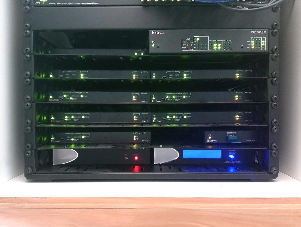 “We evaluated various technologies and brands with Kenyon’s representatives for their new West Quad buildings. We determined that AV over IP using Extron’s NAV system was the right solution for this particular project and client,”  Jesse Fishman CTS-D, DSCE, Senior Systems Designer, Technology & Acoustics at NV5. “Implementing NAV systems throughout the academic, administrative, and library buildings for classrooms, meeting rooms, and general-purpose spaces made the most sense.”