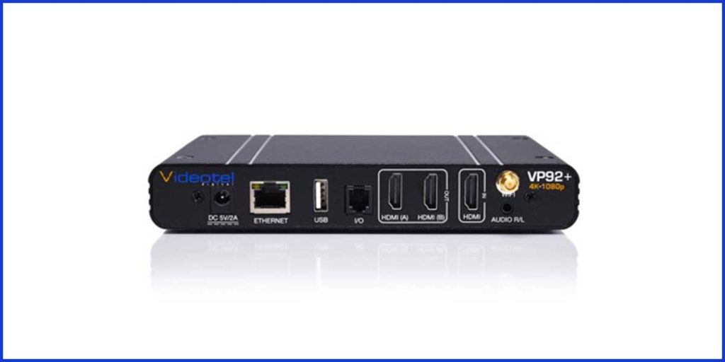 Videotel Digital announced its VP92+ now has dual HDMI ports so that this one player can display content on two screens at the same time. Each VP92+ player comes standard with 64GB of RAM and ARM’s Quad-core G52-2EE processor, that contains four processing cores in a single chip. In addition, the unit runs on an Android operating system and can play 4K video at 60fps.