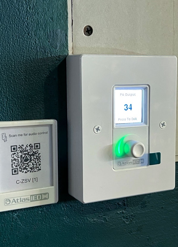 AES enhanced the venue’s flexibility and ease of use by installing an Atmosphere C-ZS wall controller, enabling staff to control audio levels and source selection across multiple zones with simple, intuitive controls.