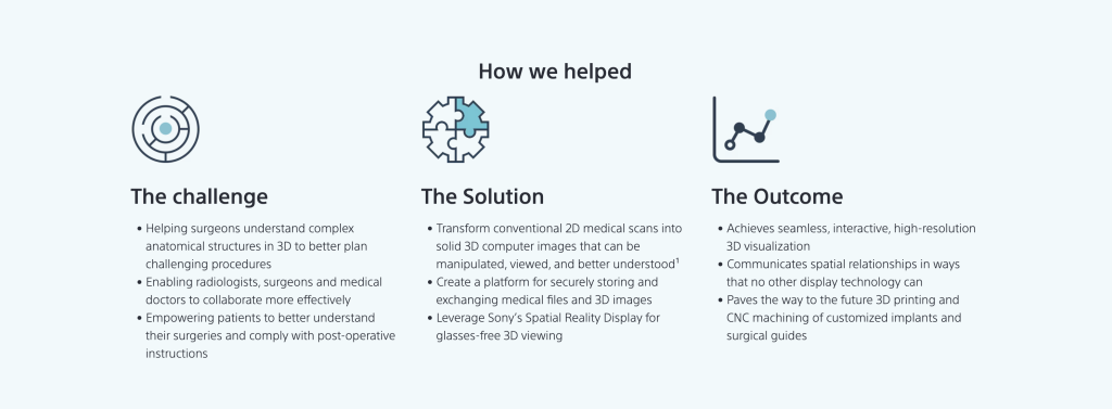 According to James Hill, Singular Health’s Chief Operating Officer, “There’s also a natural reluctance to putting on VR goggles. It’s a large jump for most surgeons or radiologists. Then the emergence of Covid-19 made people even more hesitant to put the goggles on. The Sony display allows the doctors to work in an environment they’re comfortable with. And our system provides a 3D model that can be viewed by your nurses, clinical team, tumor review board, medico-legal personnel and not least by the patients themselves.”
