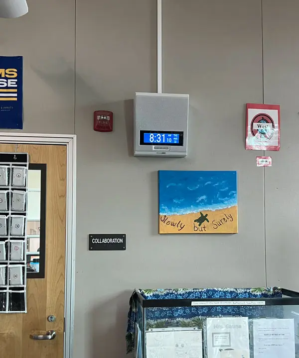 Staff and students appreciate the audio upgrades, albeit for different reasons Teachers are relieved by the improved audio clarity, as they can finally hear things “loud and clear,” and emergency alerts include visual messaging. Students love the music played at the end of each period to indicate a class transition.