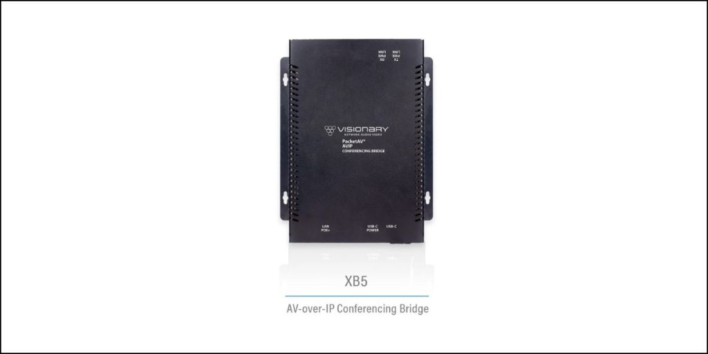 For AV integrators, the XB5 consolidates multiple system components—such as USB extenders, switchers and audio interfaces—into one compact device. The unit is fully compatible with Visionary’s 5-Series endpoints and runs over standard 1GbE network switches. Support for AES67 and Dante audio allows easy integration with DSPs and networked audio systems, including audio embedding and de-embedding with AEC processing.